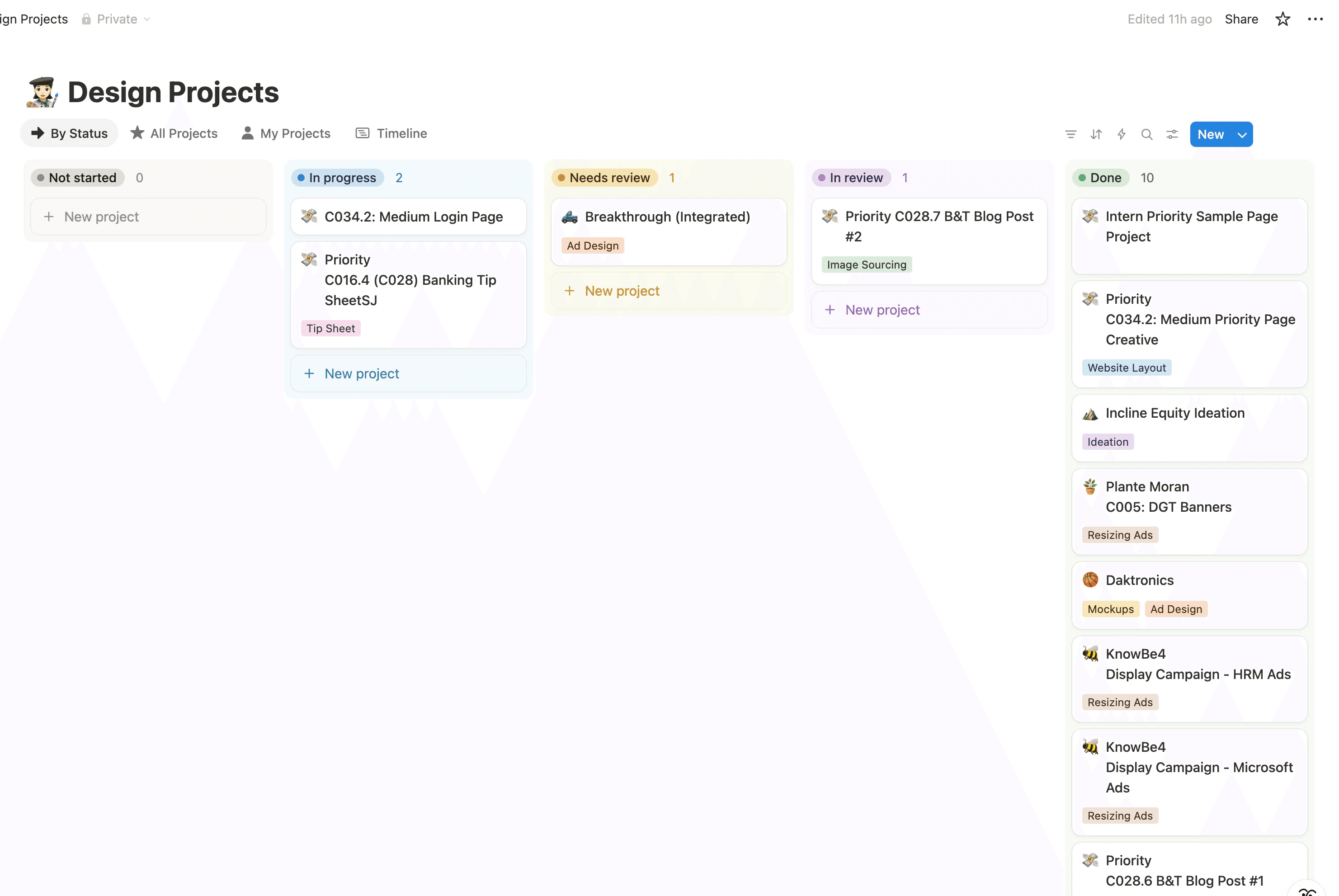 Tracked projects with client feedback that often arrived weeks later, ensuring updates were addressed even while I was actively working on multiple new projects.