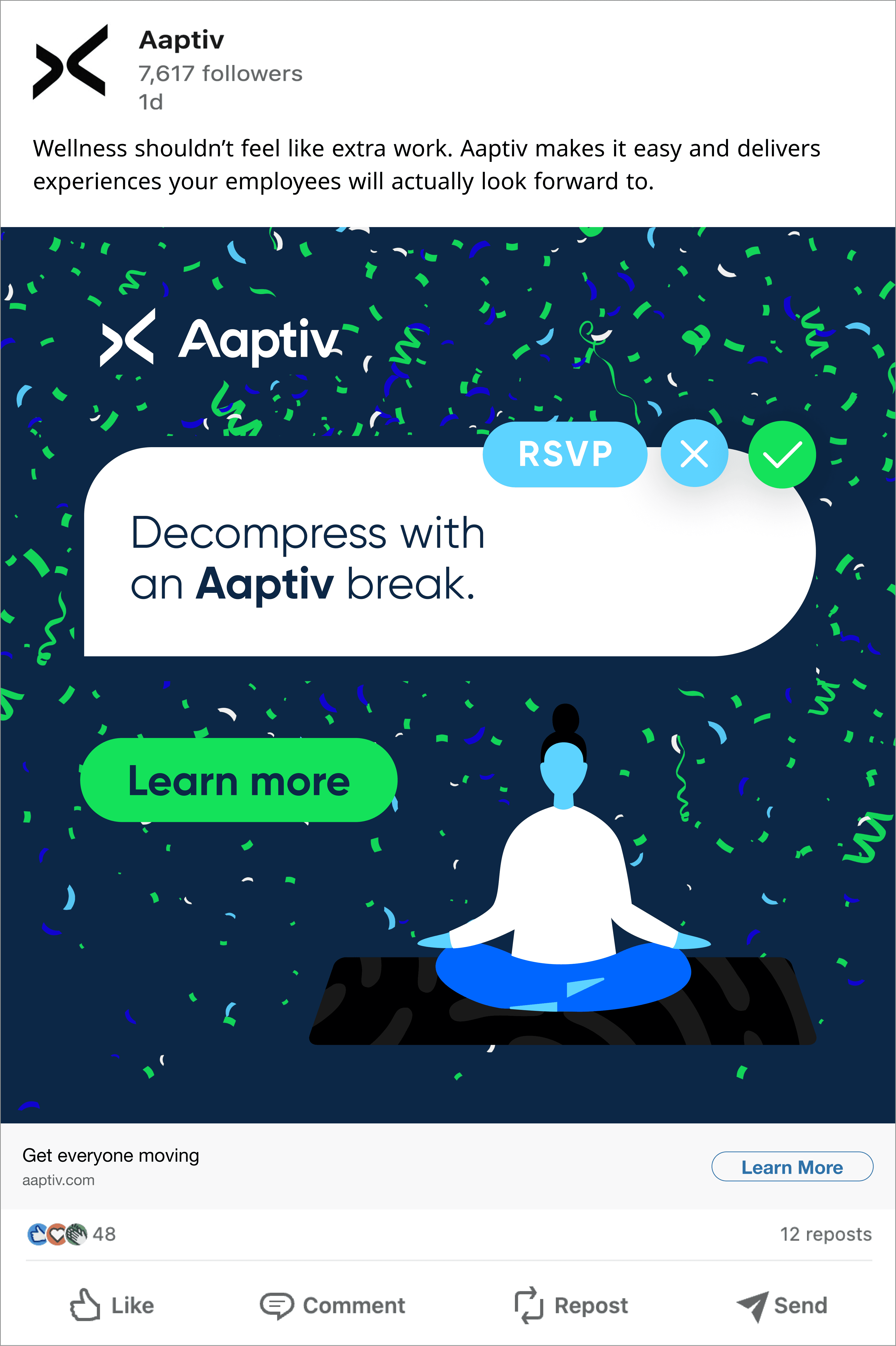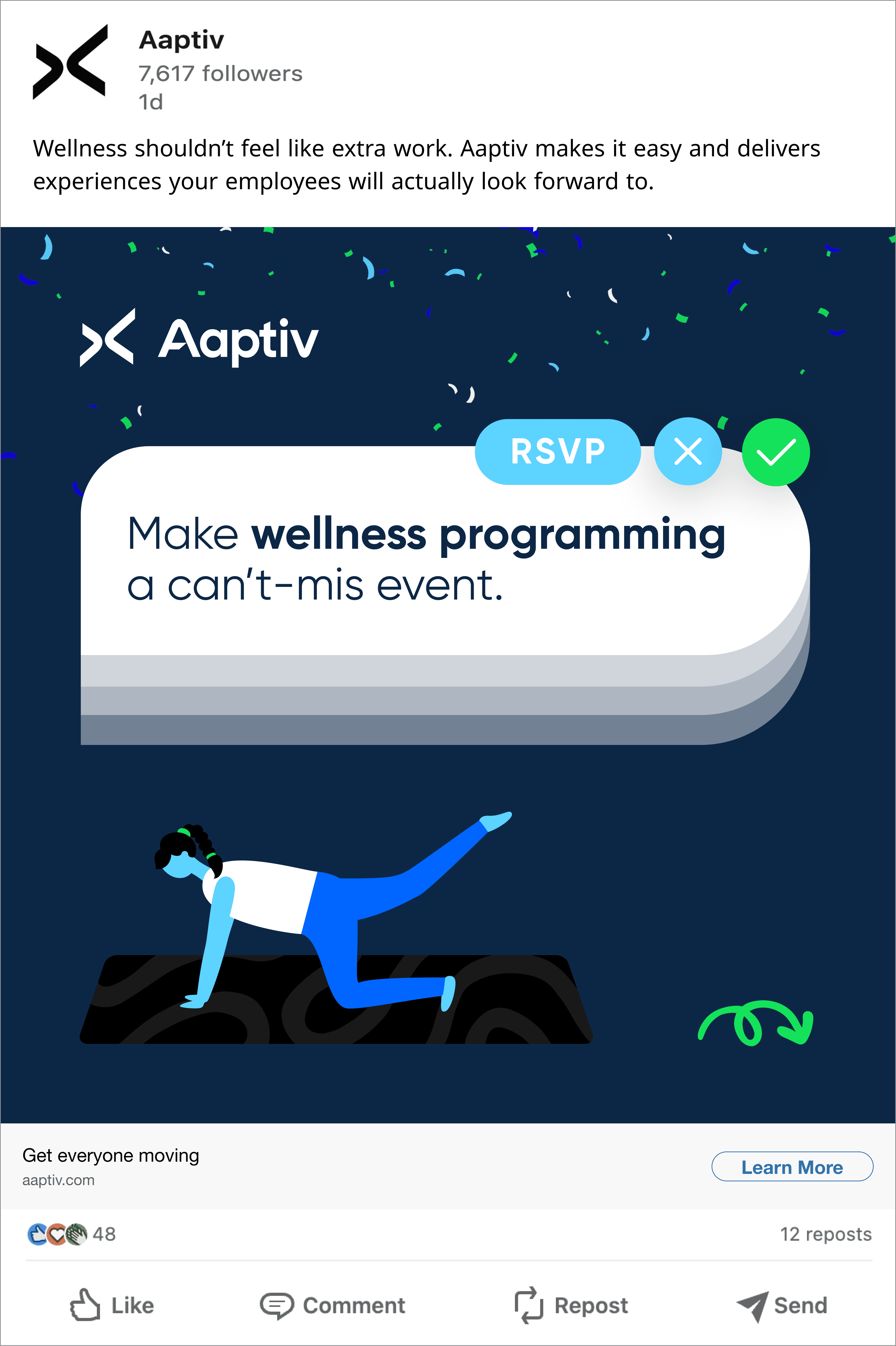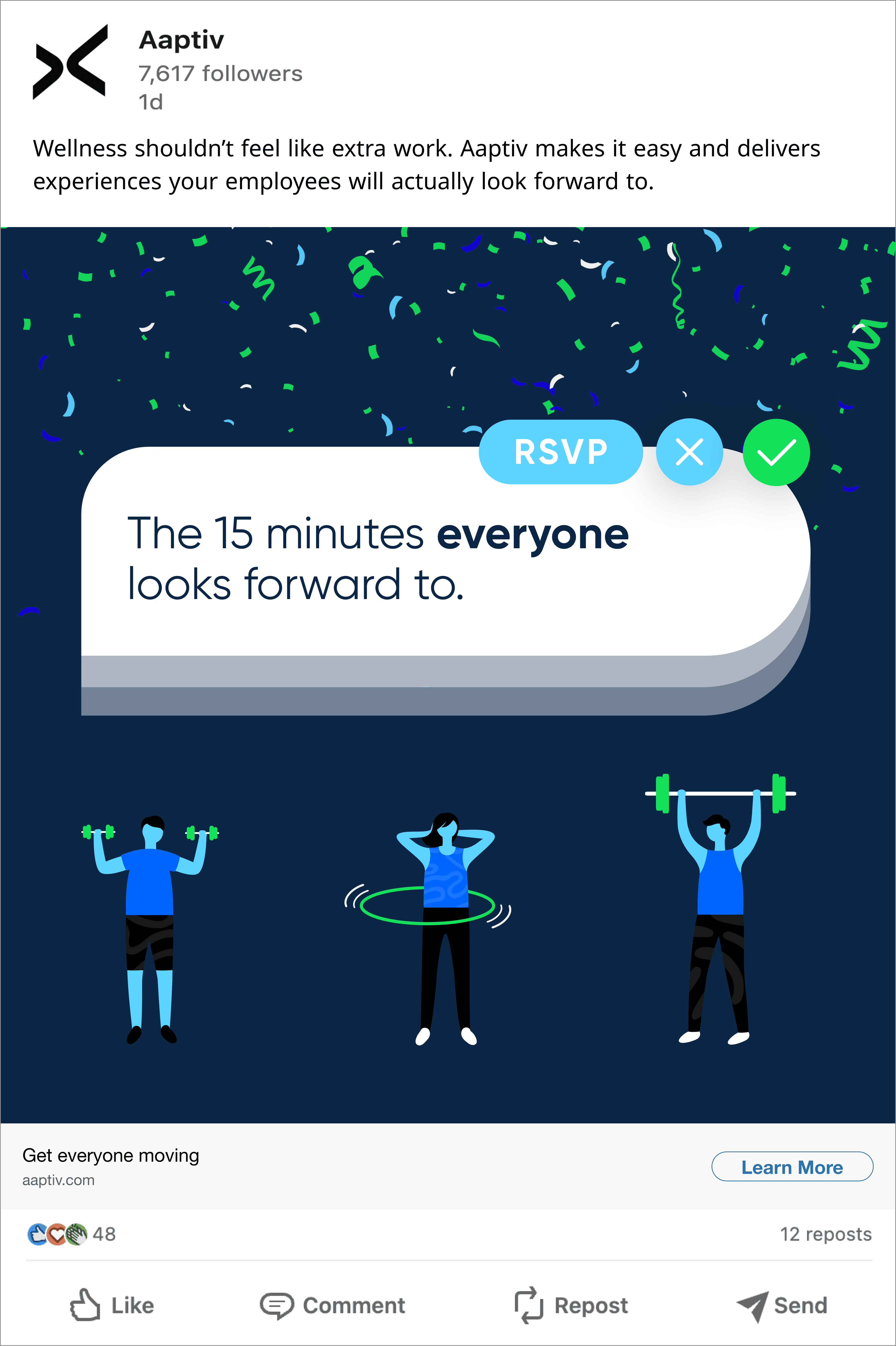 The concepts were created to be targeted toward HR professionals, positioning Aaptiv as a wellness benefit that companies could