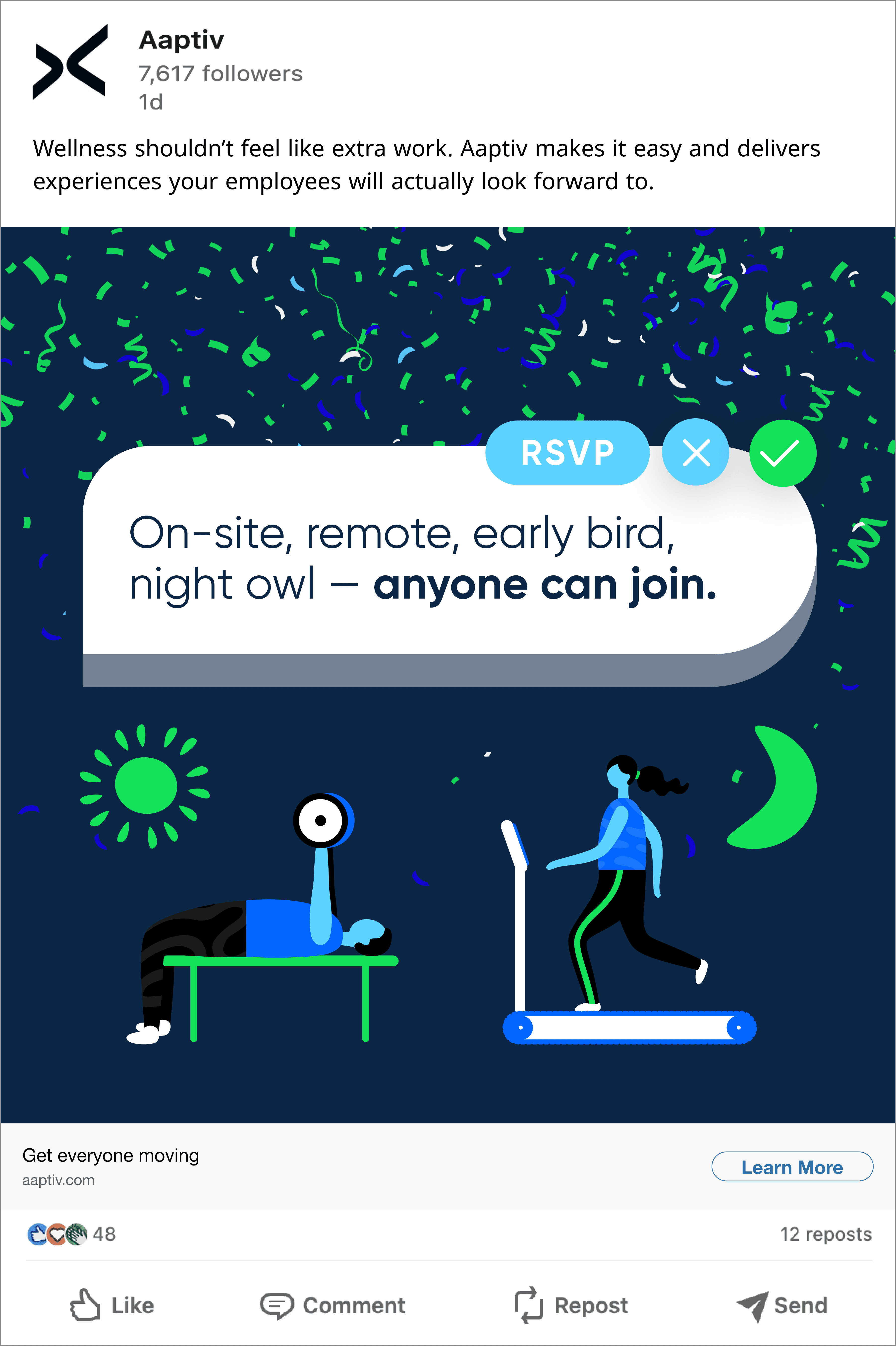 "Aaptiv helps with the “how” in employee wellness programming. All you have to do is get moving"